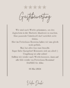 Unser Ziel ist es, Ihren Aufenthalt so angenehm wie möglich zu gestalten und wir sind stets bemüht, all Ihre Wünsche zu erfüllen. Wir legen Wert auf Offenheit, Kommunikation und Unkompliziertheit, um sicherzustellen, dass Sie sich bei uns wie zu Hause fühlen.